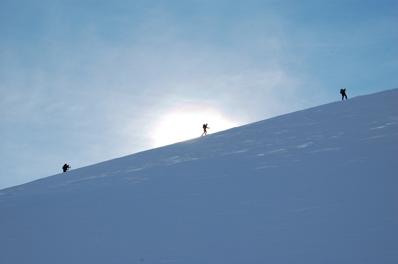 ...si sale per la traccia nella neve, sembra di salire tra le nuvole...